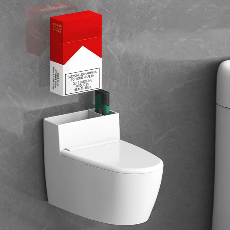 Código: PL-773. El Cenicero de inodoro con fondo plano se puede colocar en el escritorio y la encimera, o se puede montar en la pared con un soporte adhesivo sin taladros, adecuado para inodoros, lavabos, salas de estar y otros lugares.