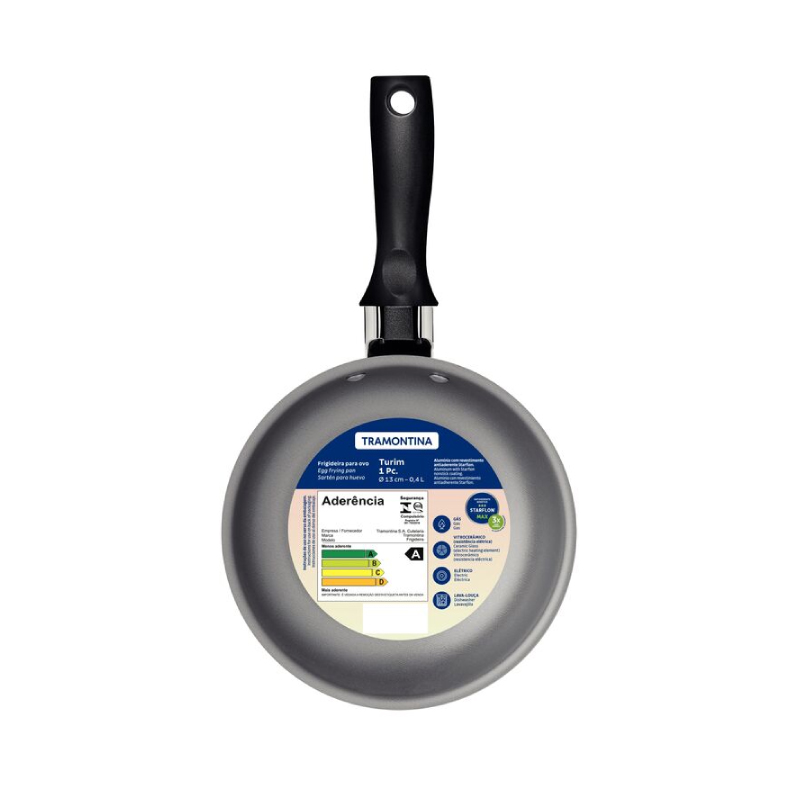 Código: 56TRG1D. La sartén para huevo Tramontina Turim en aluminio con revestimiento antiadherente Starflon Max y mango baquelita plomo 13 centímetros de diámetro y 0,4 litros garantiza practicidad en la preparación de tus recetas.