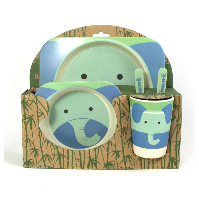 Código: PL-634. Material: bambú. Set de 2 platos, 1 vaso, 2 cubiertos. Diferentes diseños.